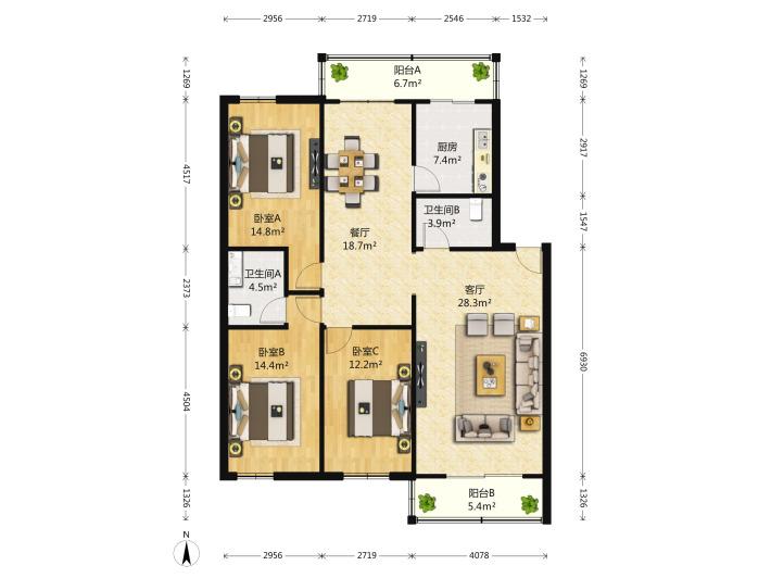 3室2厅1卫