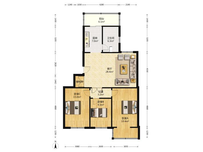 3室2厅1卫