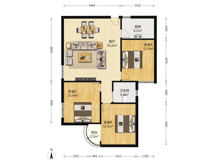 3室2厅1卫