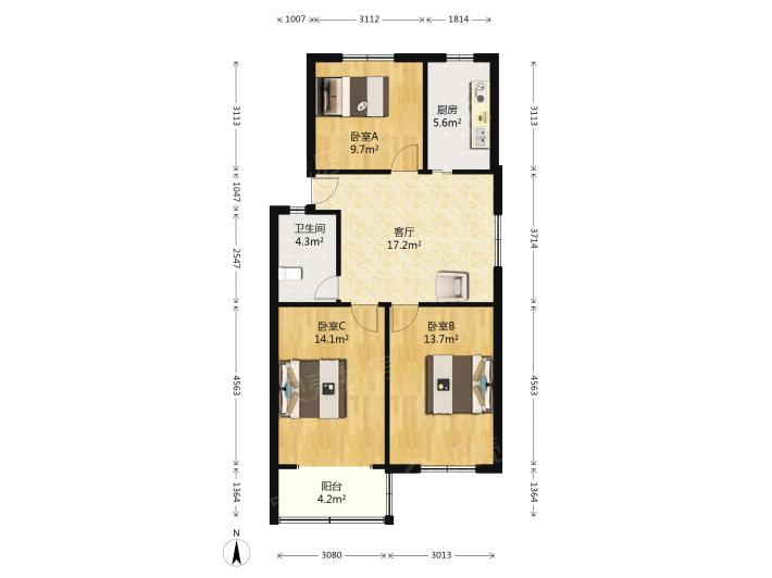 3室2厅1卫